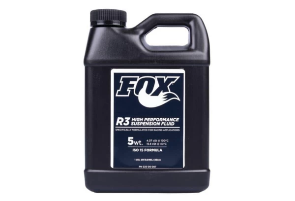 Fox Racing Shox Suspension Fluid R3 5WT is de nieuwe olie die sinds de 2016 vintage gebruikt wordt voor Fox cartridges. Het biedt optimale dempingseigenschappen over een breed temperatuurbereik