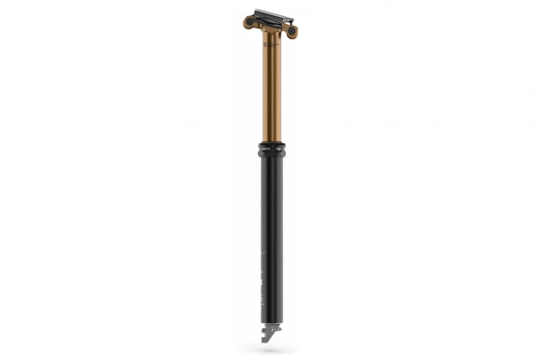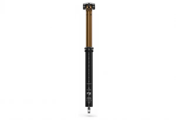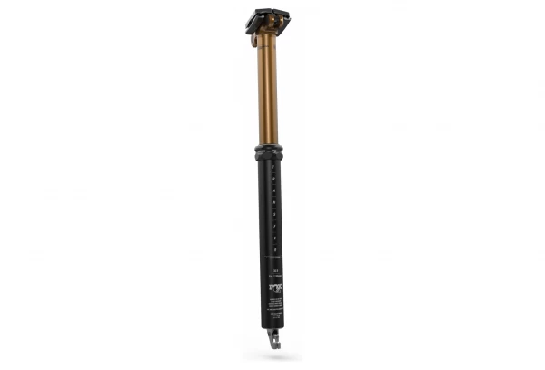Dit is de nieuwe versie van de Fox telescopische zadelpen, deze nieuwe Transfer Factory heeft een Kashima coating herkenbaar aan de gouden kleur en de mogelijkheid om de positie traploos in te stellen over de gehele slag, een andere mogelijke keuze, de werkingswijze van de stuurvergrendeling, in deze versie is de doorgang van de huls intern.