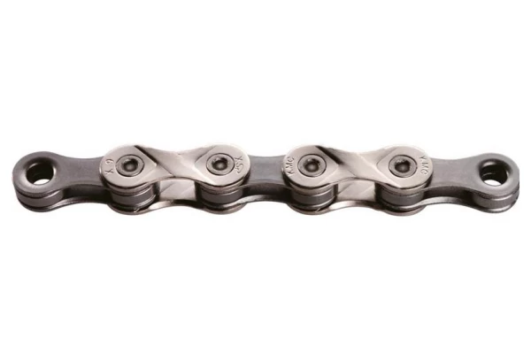 De KMC 9-speed X9 kettingpast op alle 9-speed aandrijvingen en overtuigt met perfecte schakelprestaties. De speciaal gegroefde binnenste en buitenste schakels verbeteren het schakelcomfort en verminderen het geluid. De paddestoelvormige klinknagels zorgen voor optimale duurzaamheid met grote flexibiliteit.Details