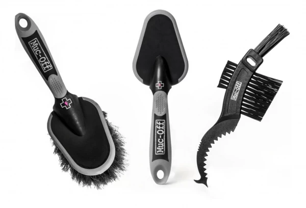 Kit van 3 Muc-Off borstels om uw v lo in alle hoeken en gaten schoon te maken Kenmerken – 55mm borstel met zijdeachtige afwerking om het frame van uw v lo, de onderdelen en uitrusting schoon te maken en de moeilijke afwerkingen te bereiken – 35mm borstel, ideaal voor het reinigen van naven, kleine uitsparingen in het frame, voorvork en hoepels van de ophanging – Klauwvormige borstel met speciale textuur en mylon borstelharen, ideaal voor cassettes, kettingen en transmissie