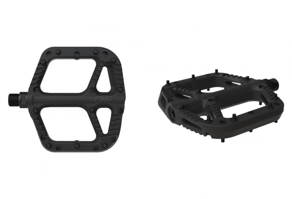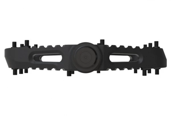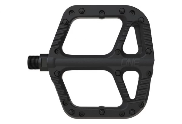 Het OneUp Composite Pedal Pair heeft hetzelfde ontwerp en dezelfde afmetingen als het topmodel aluminium, maar is geheel gemaakt van Nylon composiet en weegt 355 gram per paar. Hij biedt een enorm platform van 115 x 105 mm, maar met slechts 12 mm dikte voor het nauwste contact met de as, terwijl de 10 pukkels per kant zorgen voor uitstekende grip in alle omstandigheden.