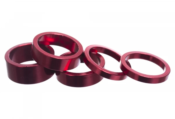 Parts 8.3 Aluminium Headset Spacers Kit, bestaande uit 5 stuks van 5,10 en 15mm dikte.