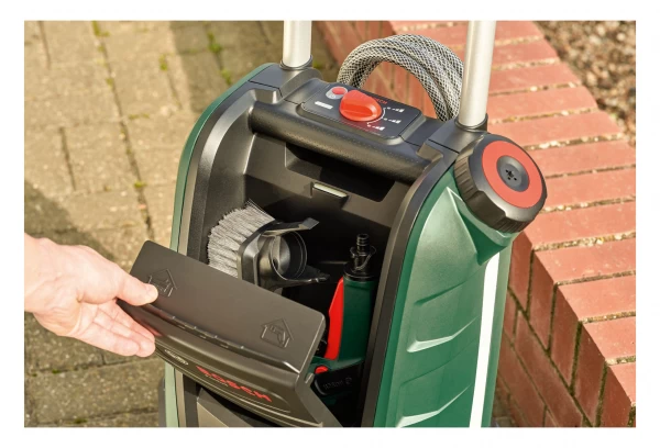 Let op wat je leuk vindt. Draadloos reinigen thuis of onderweg via de permanente wateraansluiting of met de ingebouwde tank van 15 liter. Ideaal voor de verzorging van uw waardevolle eigendommen, van auto’s en motoren tot buiteninstallaties en fietsen. Veelzijdig gebruik: vier verschillende sproeistanden, instelbare waterdruk en SmartBrush. Een uitschuifbare handgreep en stevige wielen zorgen voor een snelle montage en eenvoudig manoeuvreren.